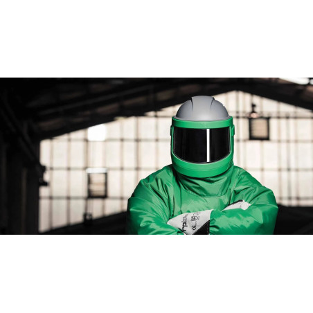 Ce casque n'a pas de filtration intégrée donc il protège uniquement des projections et de ne pas respirer l'air de l'espace de décapage.